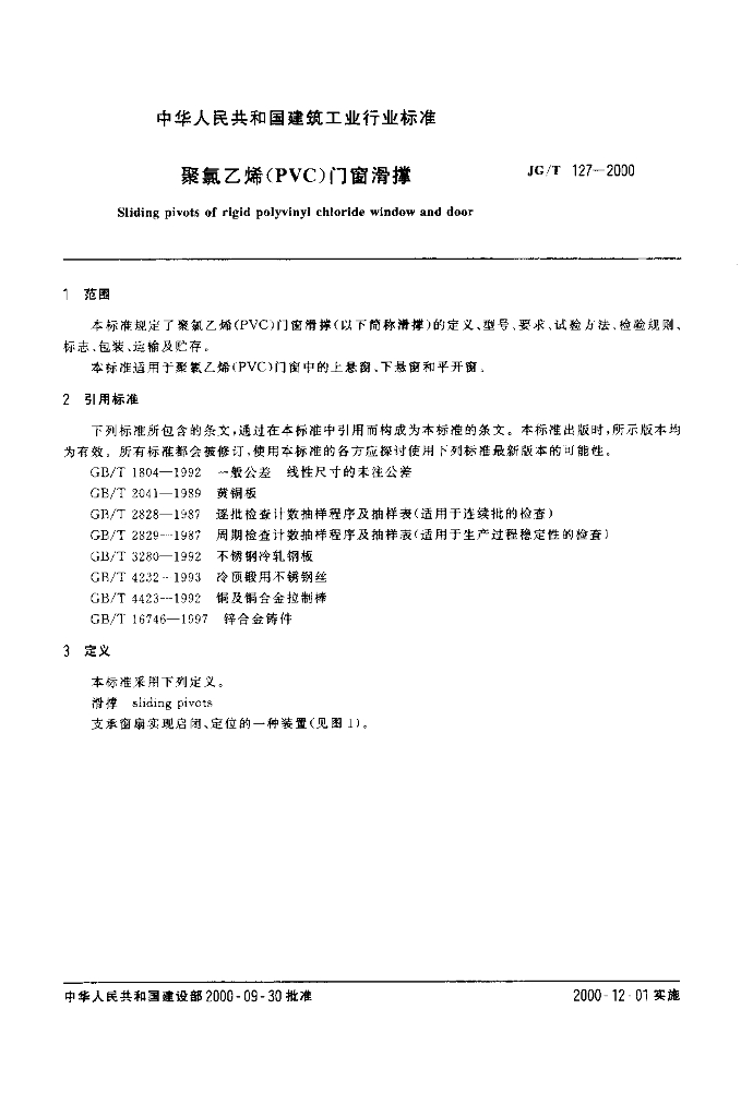 JG/T 127-2000 聚氯乙烯(PVC)门窗滑撑