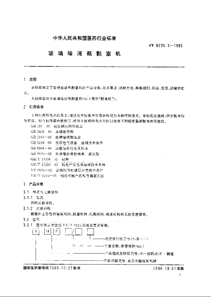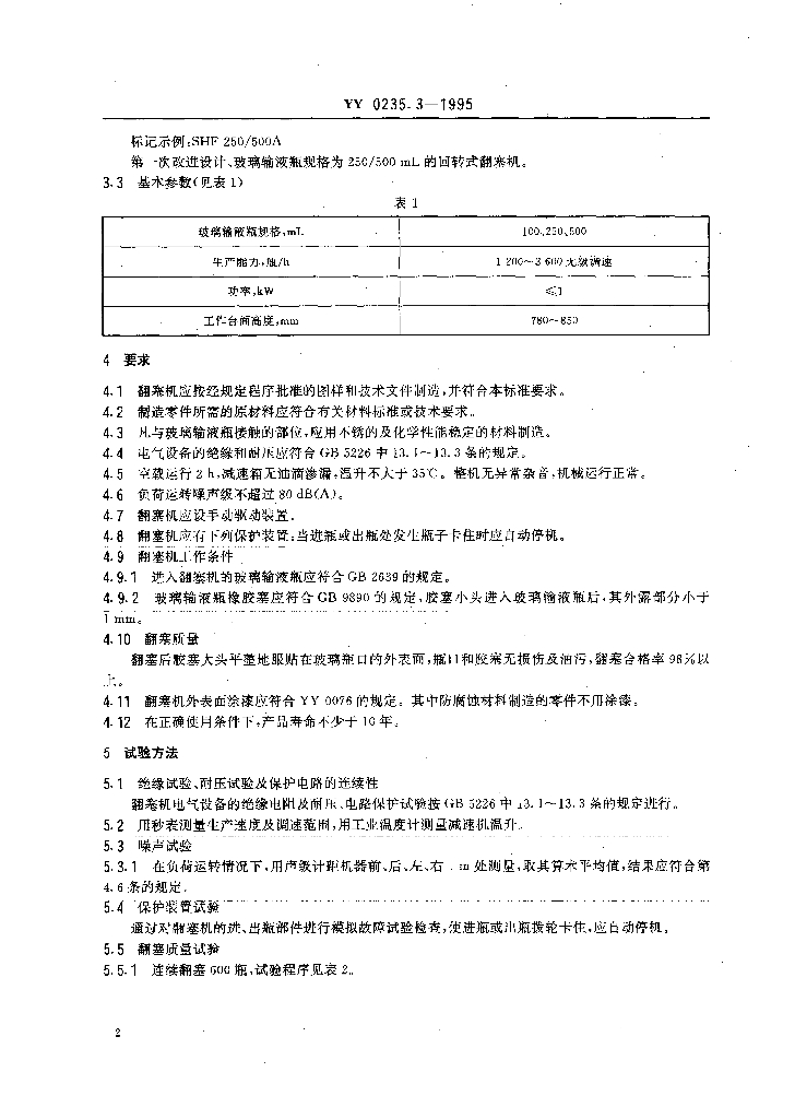 YY 0235.3-1995 玻璃输液瓶翻塞机