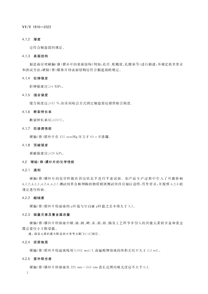 YY/T 1816-2022 外科植入物 合成不可吸收补片 硬脑(脊)膜补片