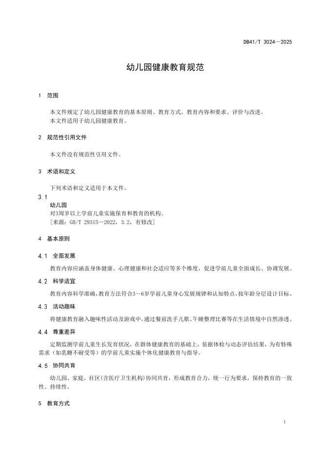 DB41/T 3024-2025 幼儿园健康教育规范