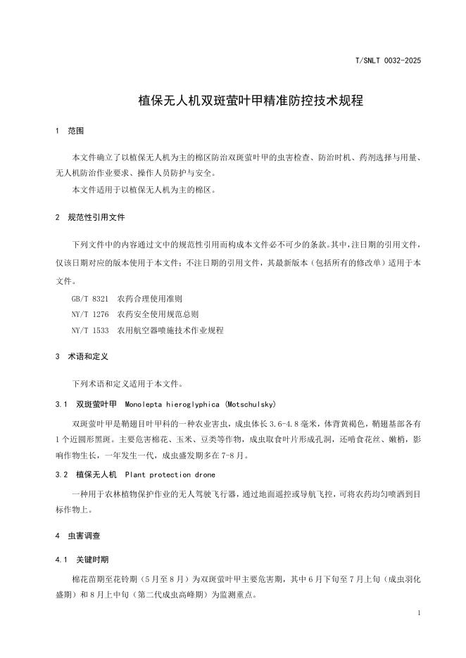 T/SNLT 0032-2025 植保无人机双斑萤叶甲精准防控技术规程