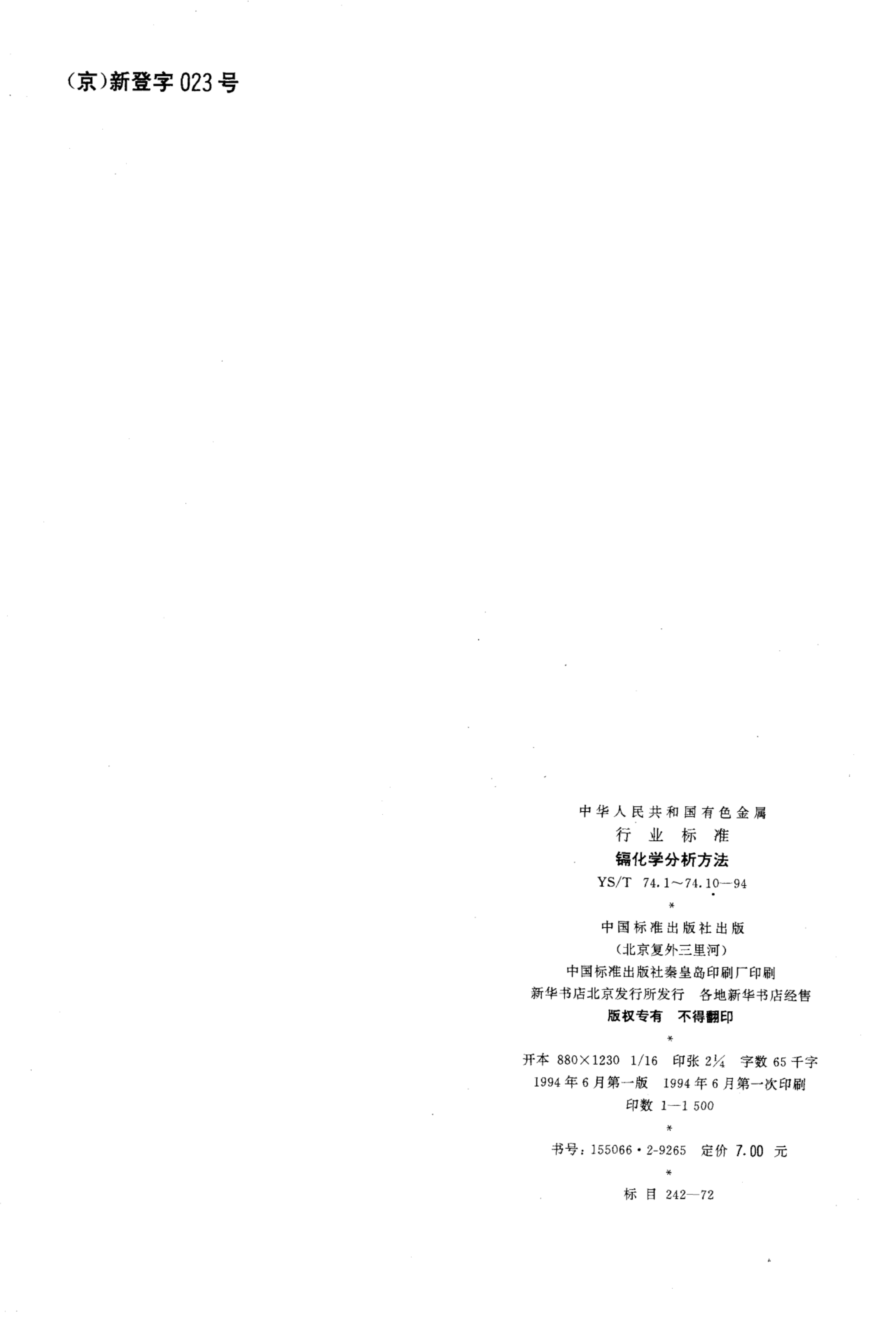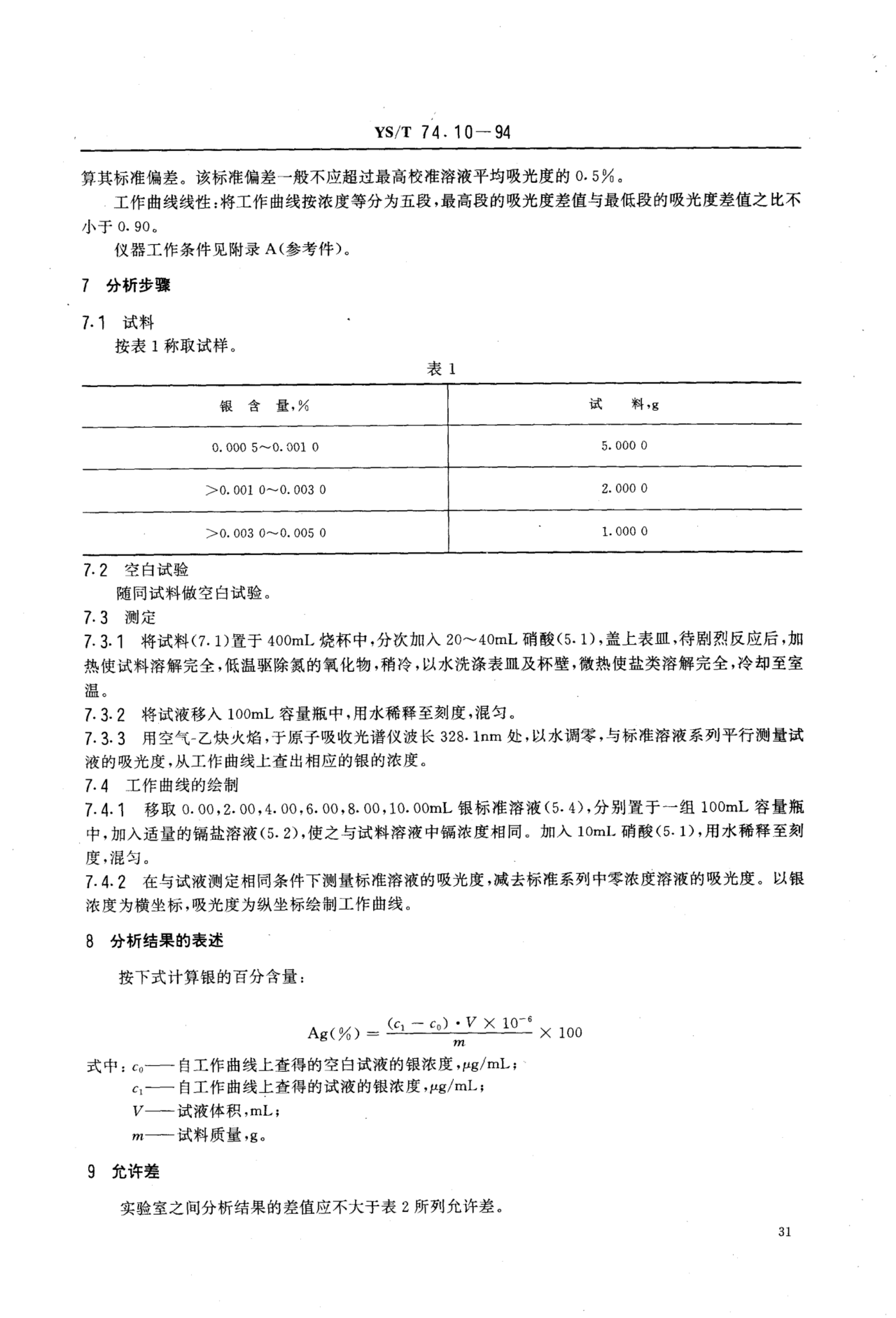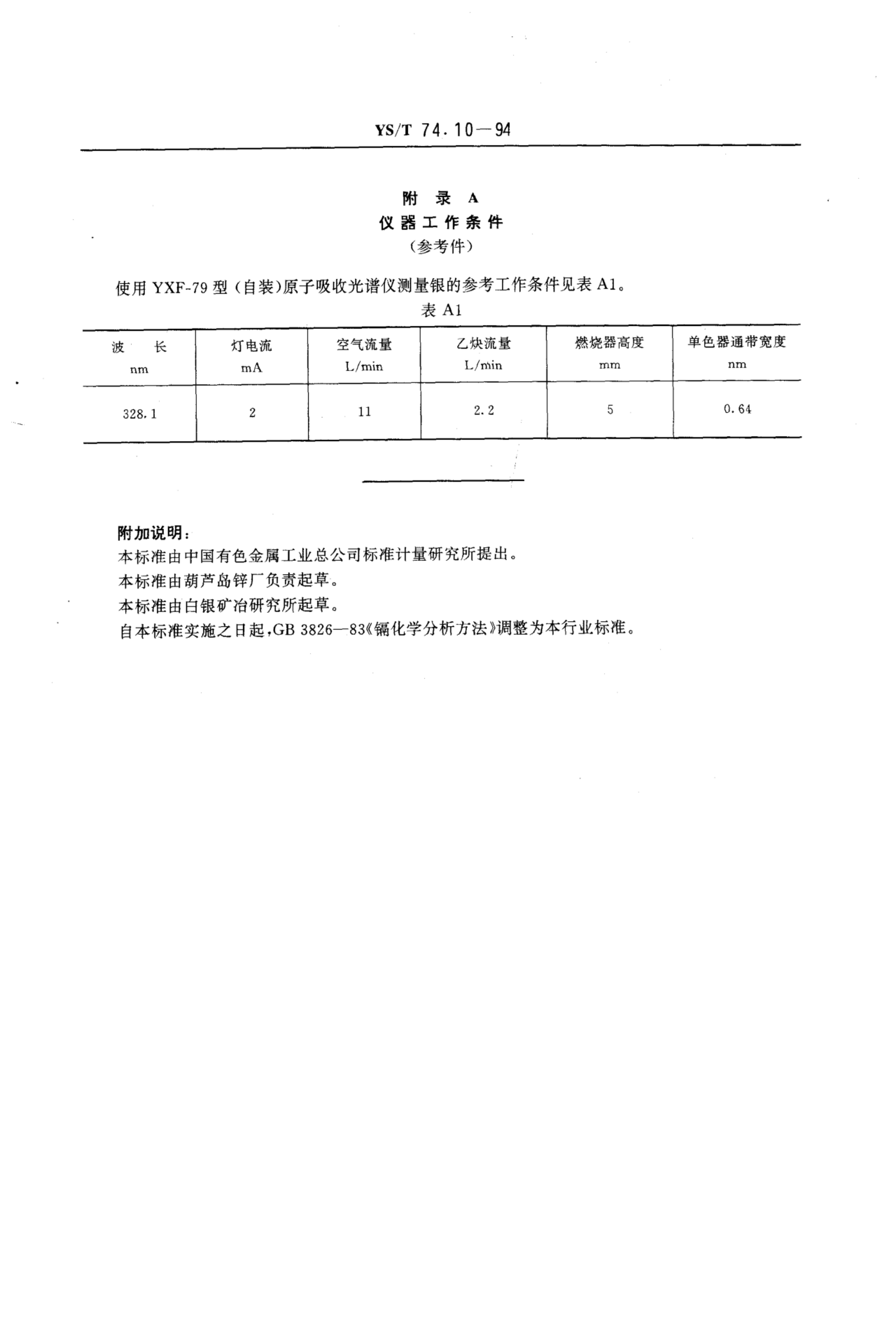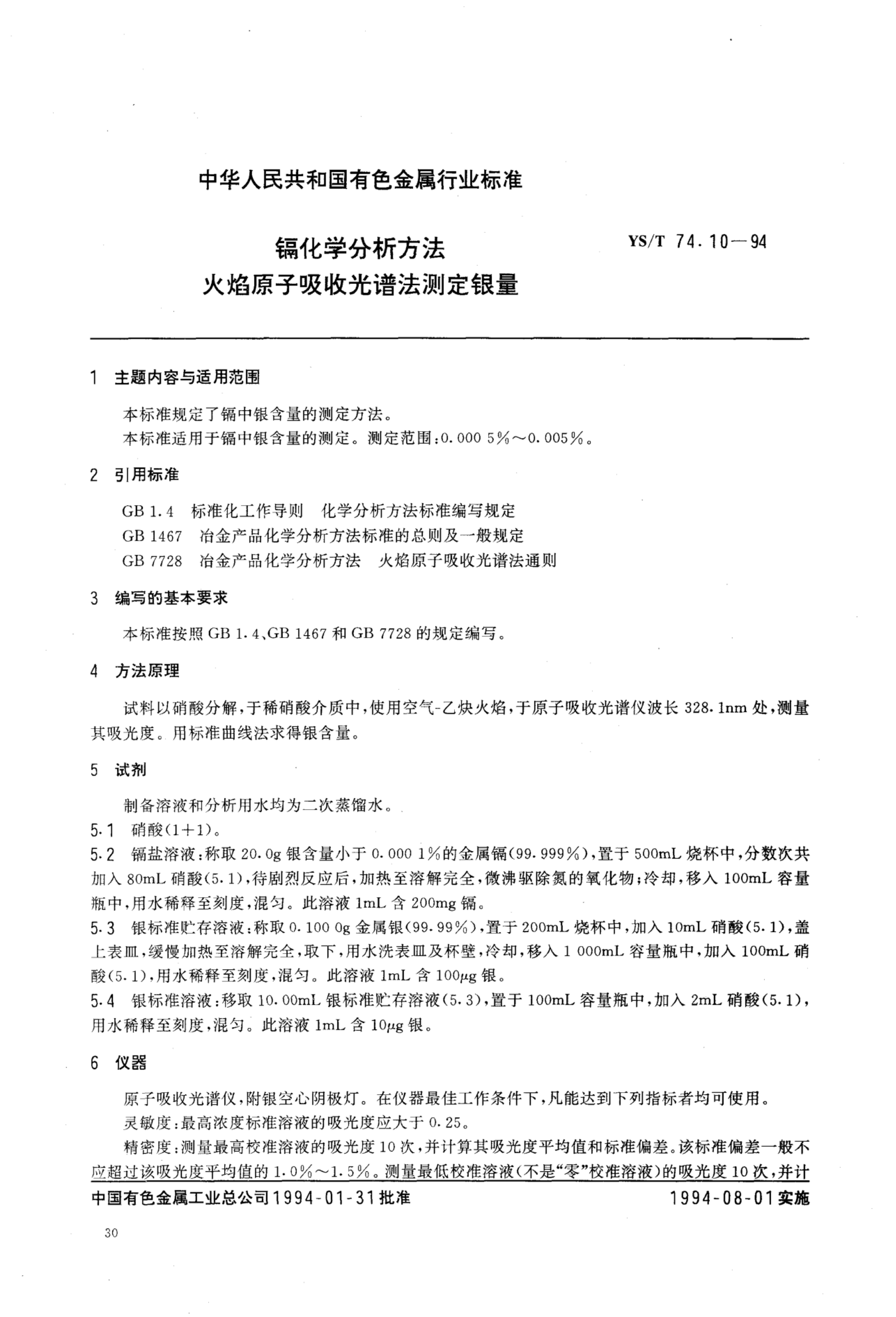 YS/T 74.10-1994 镉化学分析方法火焰原子吸收光谱法测定银量
