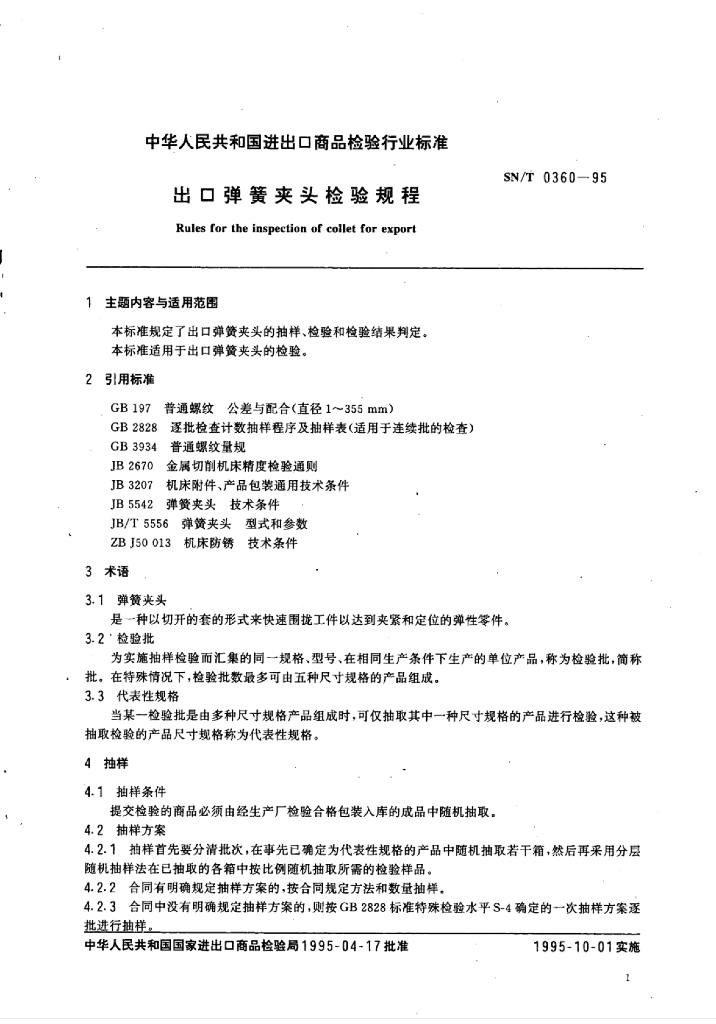 SN/T 0360-1995 出口弹簧夹头检验规程