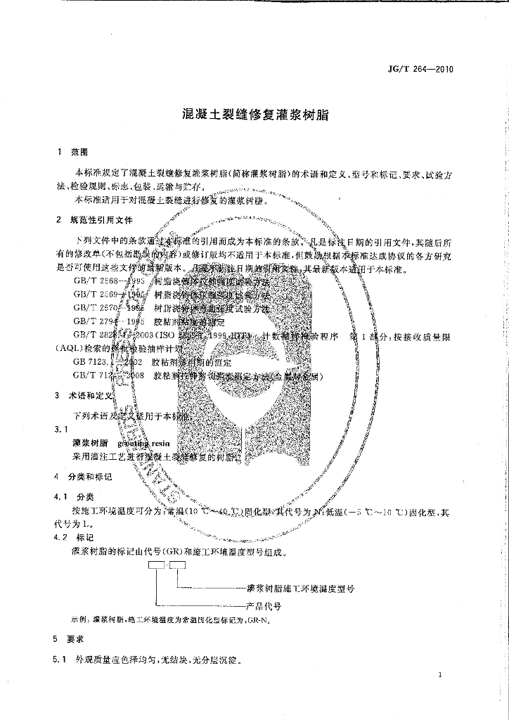 JG/T 264-2010 混凝土裂缝修复灌浆树脂