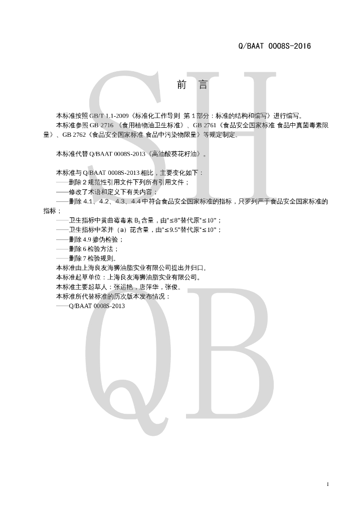 Q/BAAT 0008S-2016 高油酸葵花籽油