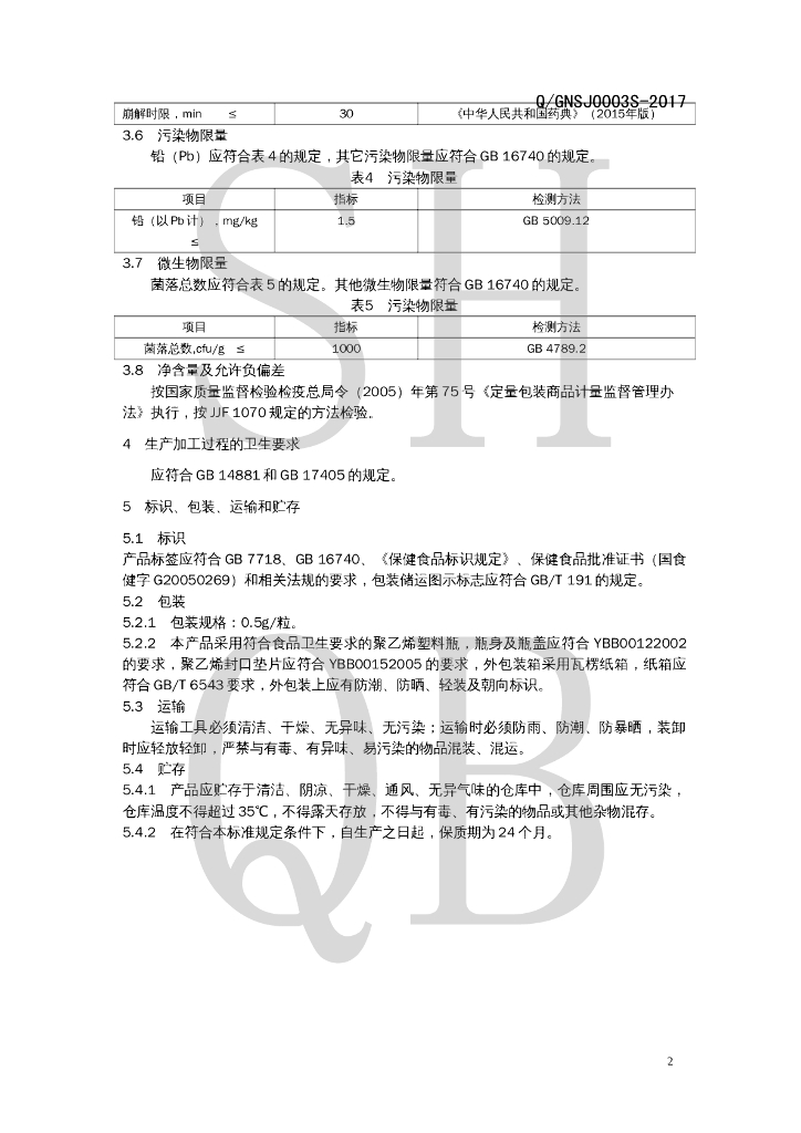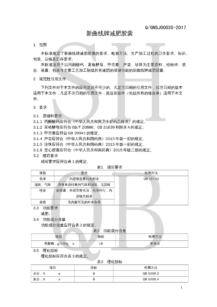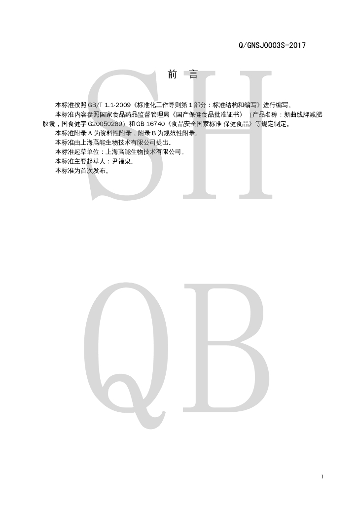 Q/GNSJ 0003S-2017 新曲线牌减肥胶囊