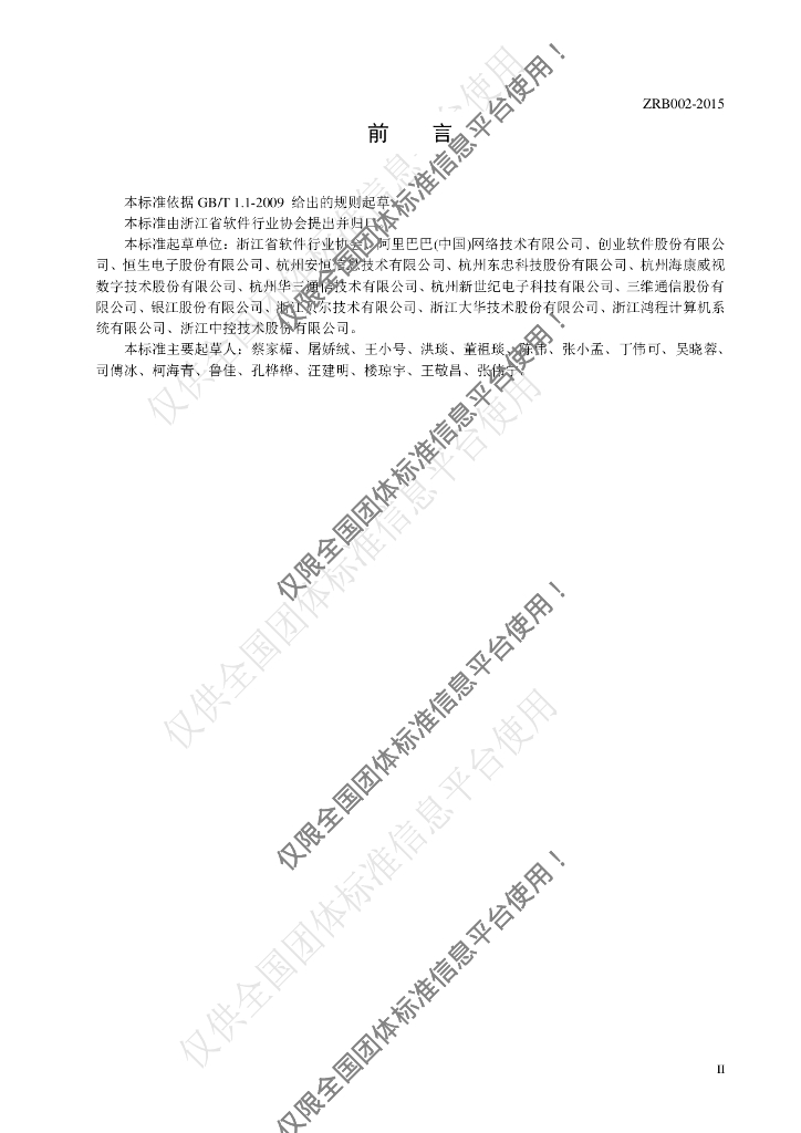 浙江省软件行业协会、阿里巴巴(中国)网络技术有限公司、创业软件股份有限公司、恒生电子股份有限公司、杭州安恒信息技术有限公司、杭州东忠科技股份有限公司、杭州海康威视数字技术股份有限公司、杭州华三通信技术有限公司、杭州新世纪电子科技有限公司、三维通信股份有限公司、银江股份有限公司、浙江贝尔技术有限公司、浙江大华技术股份有限公司、浙江鸿程计算机系统有限公司、浙江中控技术股份有限公司