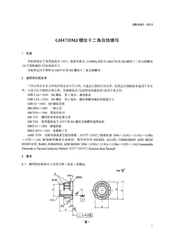 HB 8383-2013 GH4738 MJ螺纹十二角自锁螺母