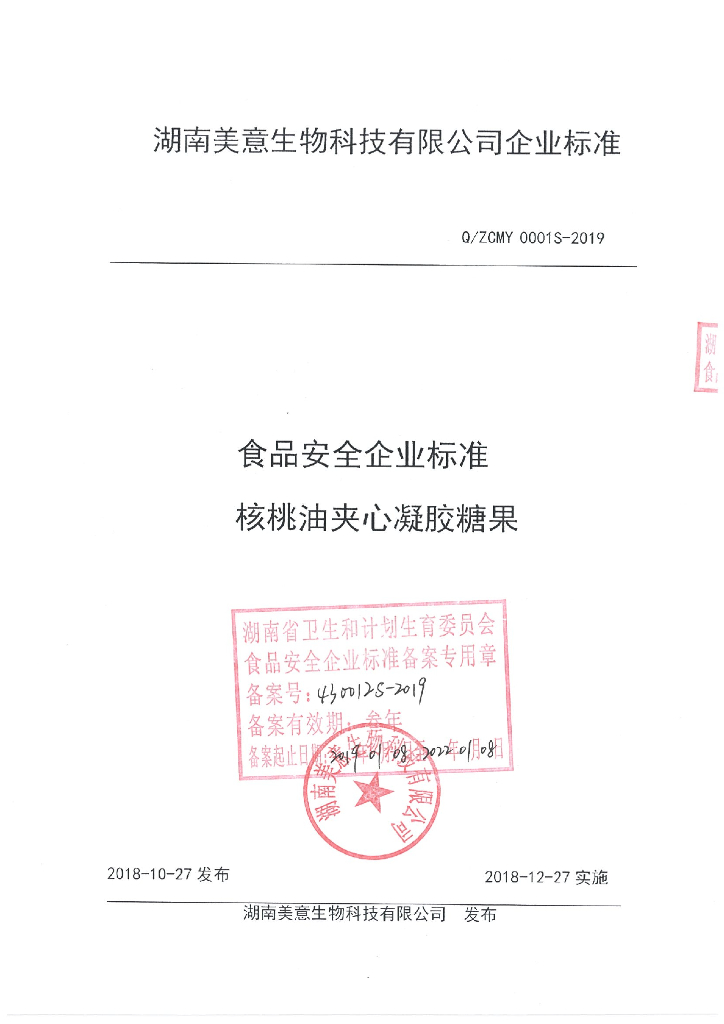 Q/ZCMY 0001S-2019 核桃油夹心凝胶糖果