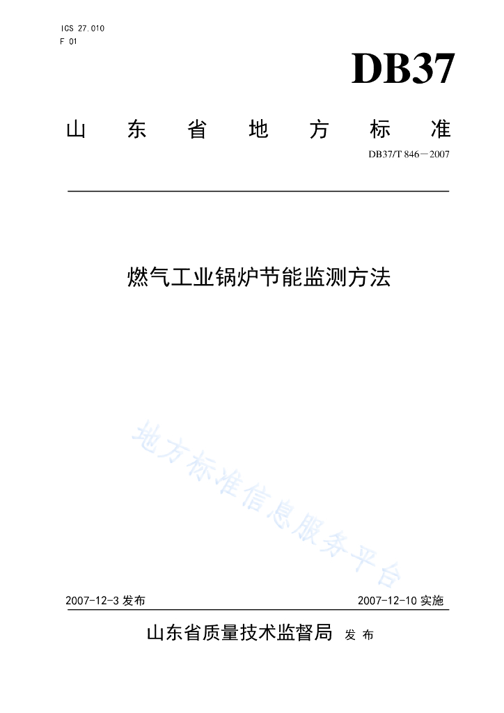 DB37/T 846-2007 燃气工业锅炉节能监测方法