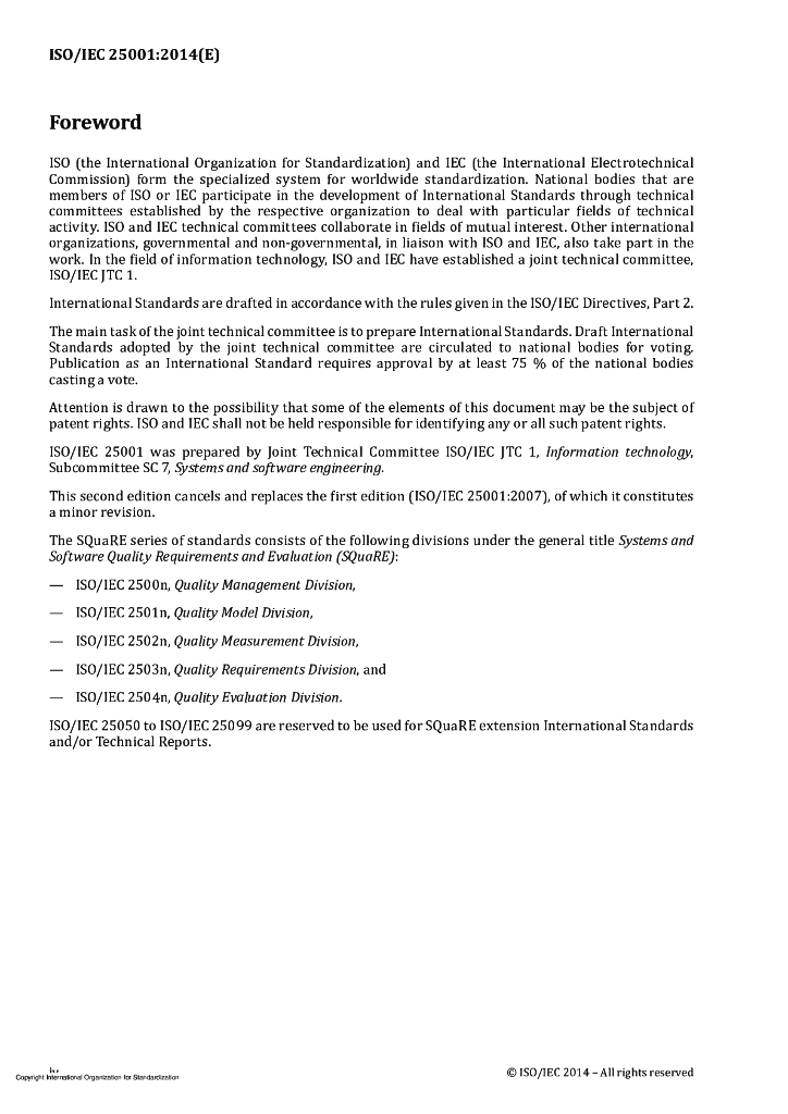 ISO/IEC 25001-2014 系统和软件工程 系统和软件的质量要求和评估(广场)规划和管理