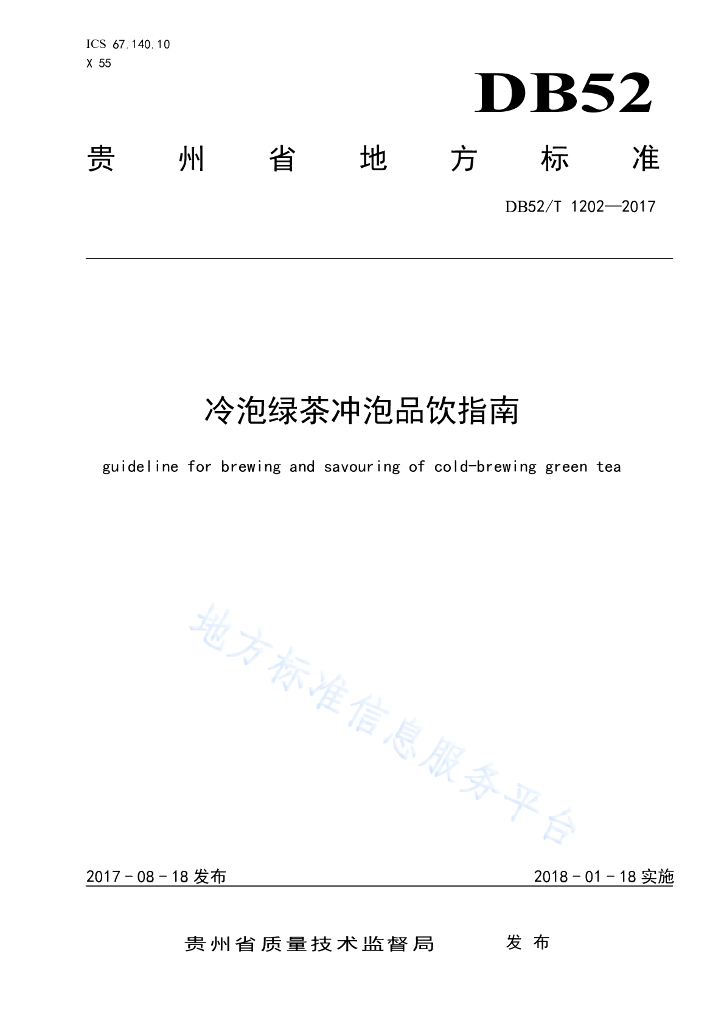 DB52/T 1202-2017 冷泡绿茶冲泡品饮指南