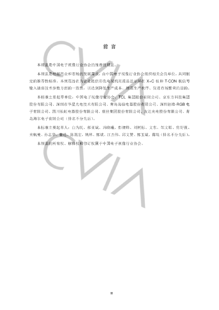 中国电子视像行业协会、TCL集团股份有限公司、京东方科技集团股份有限公司、深圳市华星光电技术有限公司、青岛海信电器股份有限公司、深圳创维-RGB电子有限公司、四川长虹电器股份有限公司、康佳集团股份有限公司、友达光电股份有限公司、青岛海尔电子有限公司