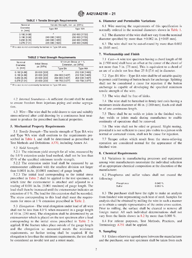 A421/A421M–21 Highvmay Standard Specification for Stress-Relieved Steel Wire for Prestressed Concrete