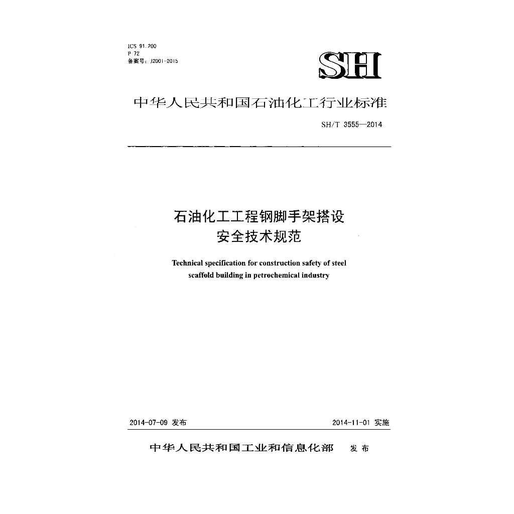 SH/T 3555-2014 石油化工工程钢脚手架搭设安全技术规范