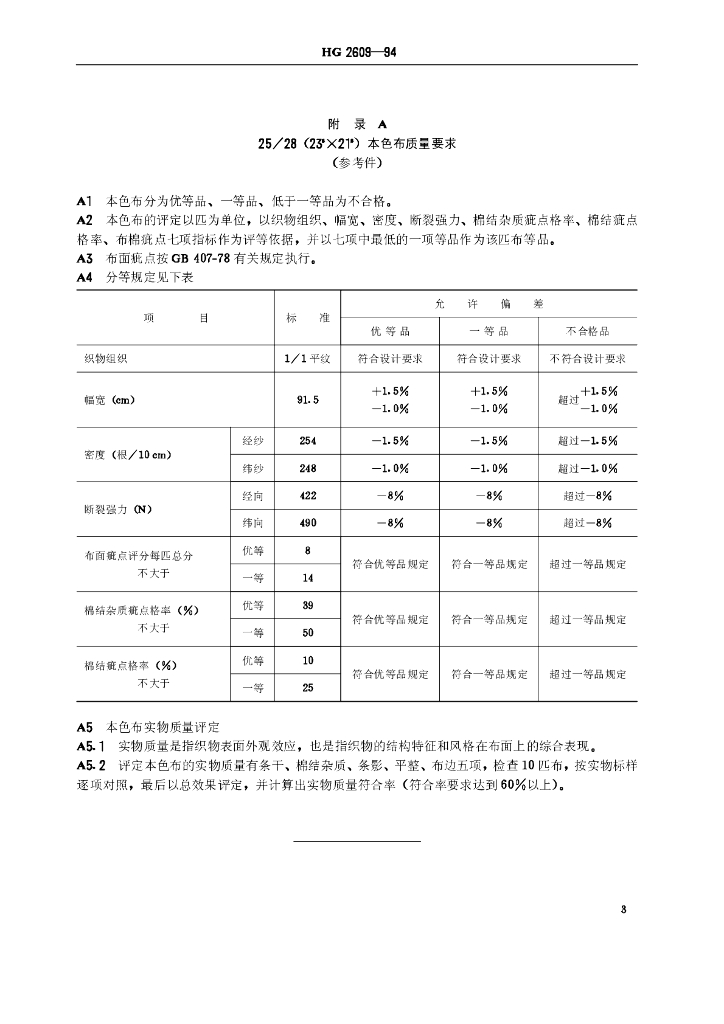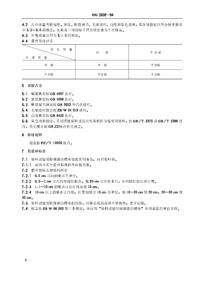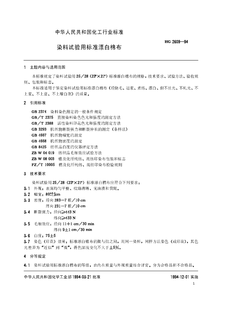 HG/T 2609-1994 染料试验用标准漂白棉布