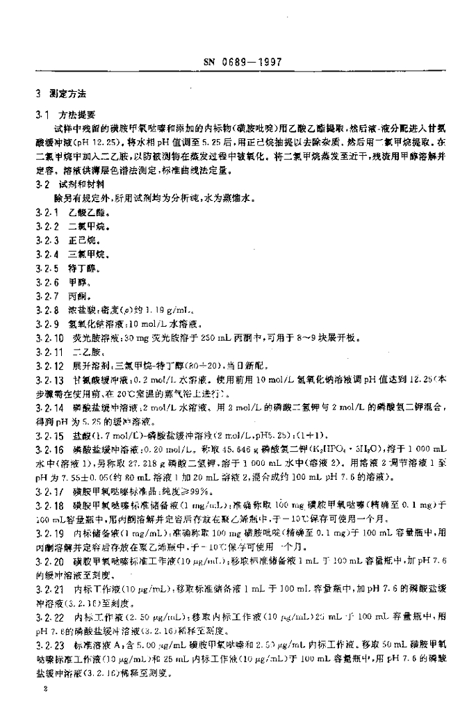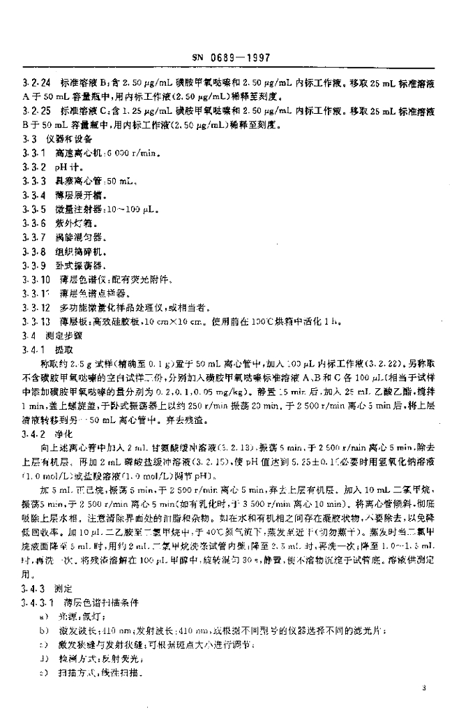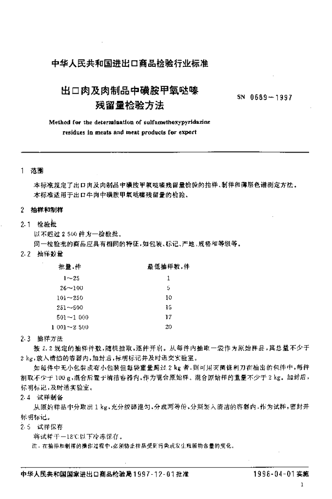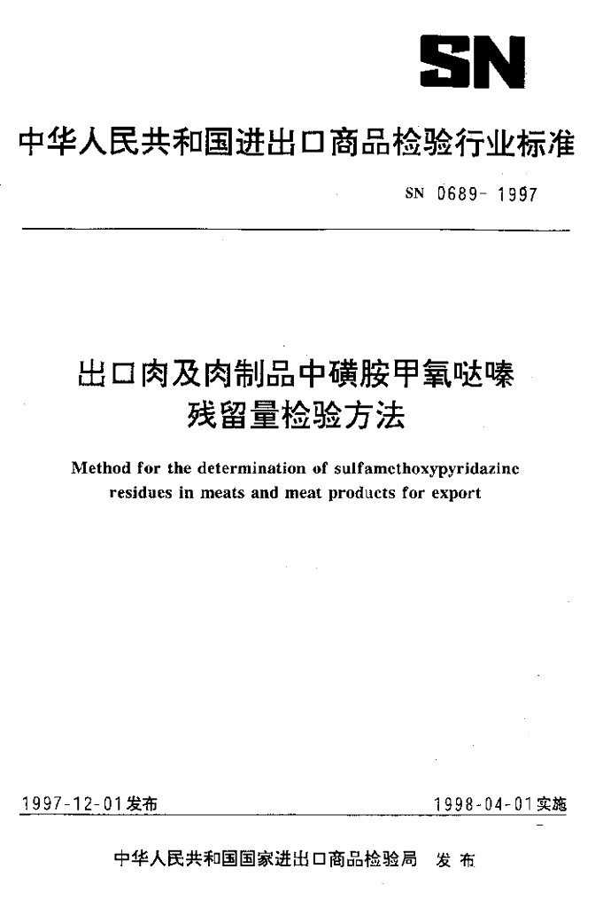 SN 0689-1997 出口肉及肉制品中磺胺甲氧哒嗪残留量检验方法
