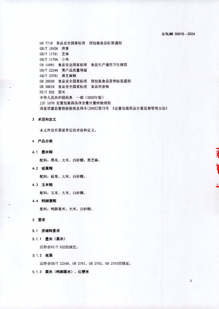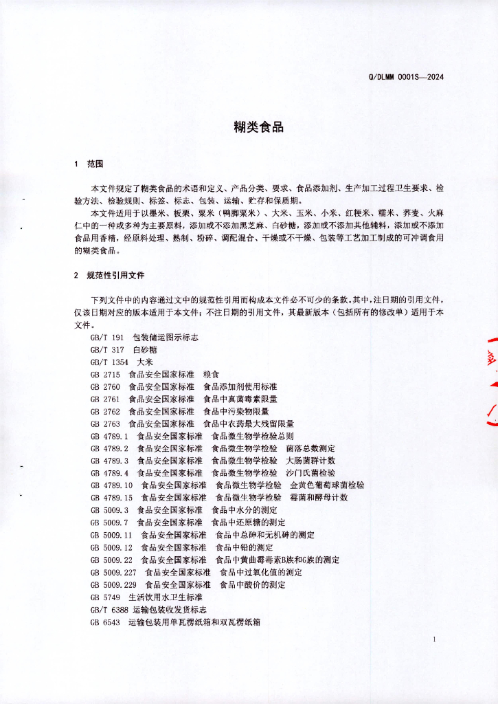 Q/DLMM 0001S-2024 糊类食品