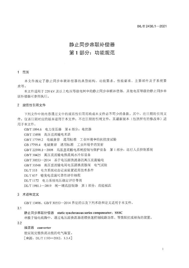 DL/T 2438.1-2021 静止同步串联补偿器 第1部分:功能规范