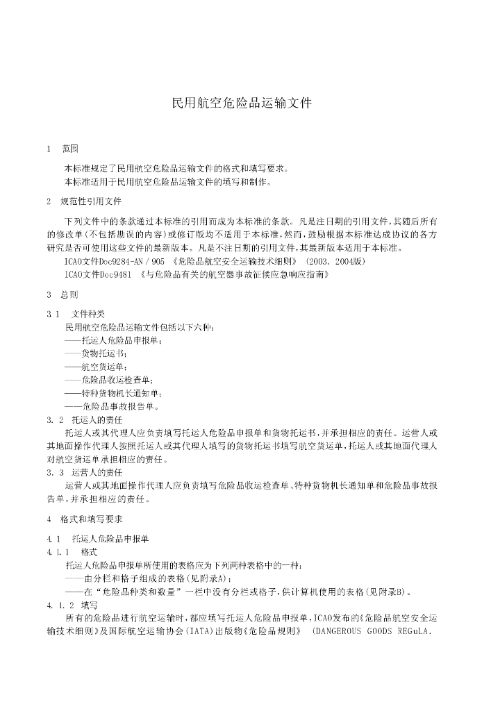 MH/T 1019-2005 民用航空危险品运输文件