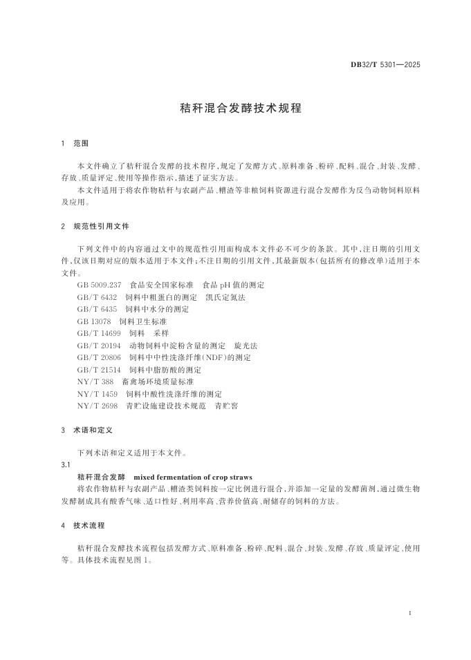 DB32/T 5301-2025 秸秆混合发酵技术规程