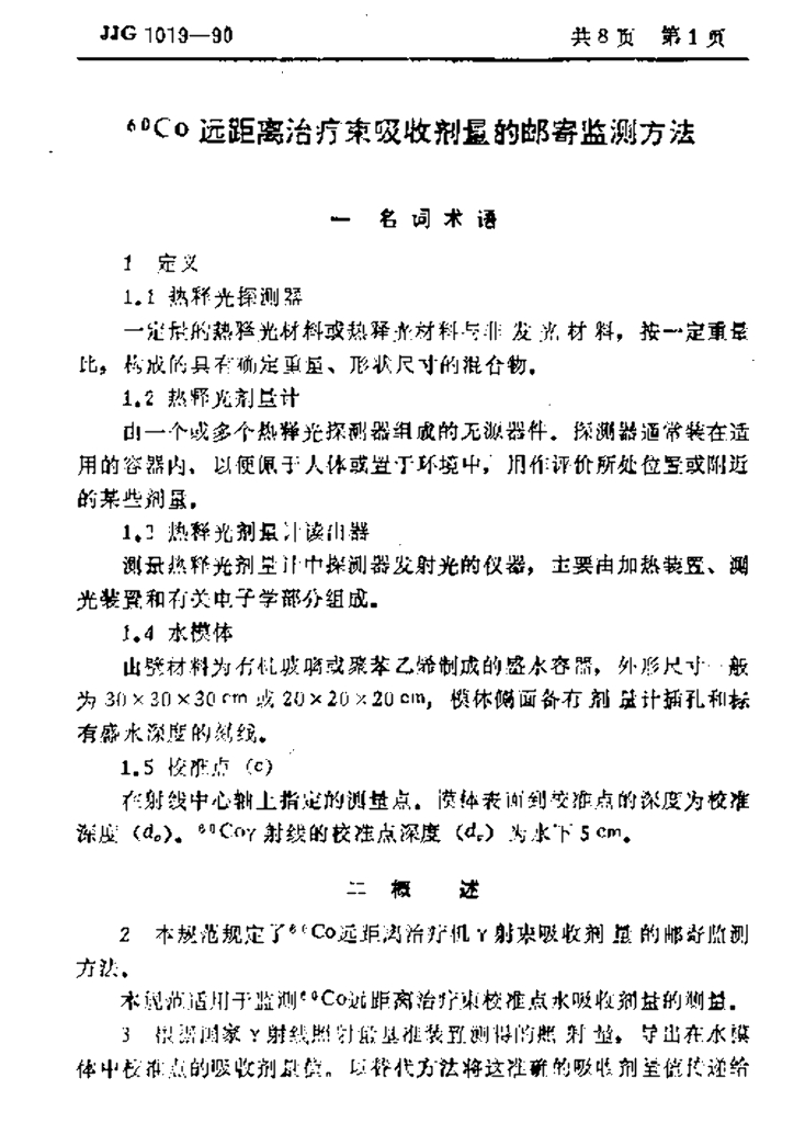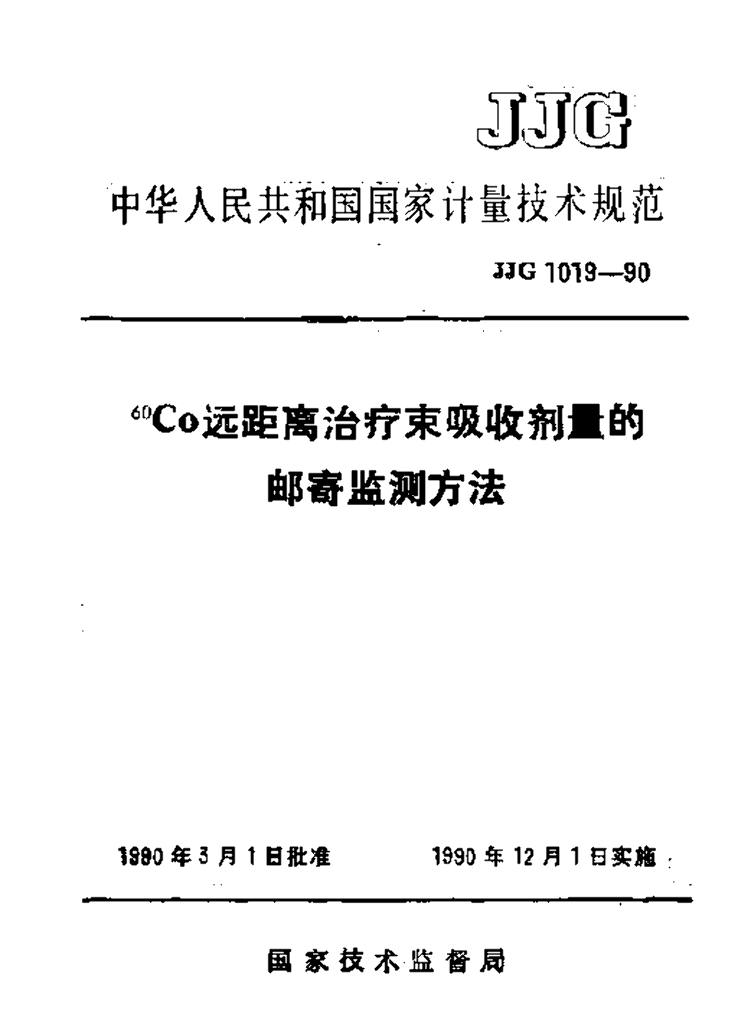 JJF 1019-1990 60Co远距离治疗束吸收剂量的邮寄监测方法