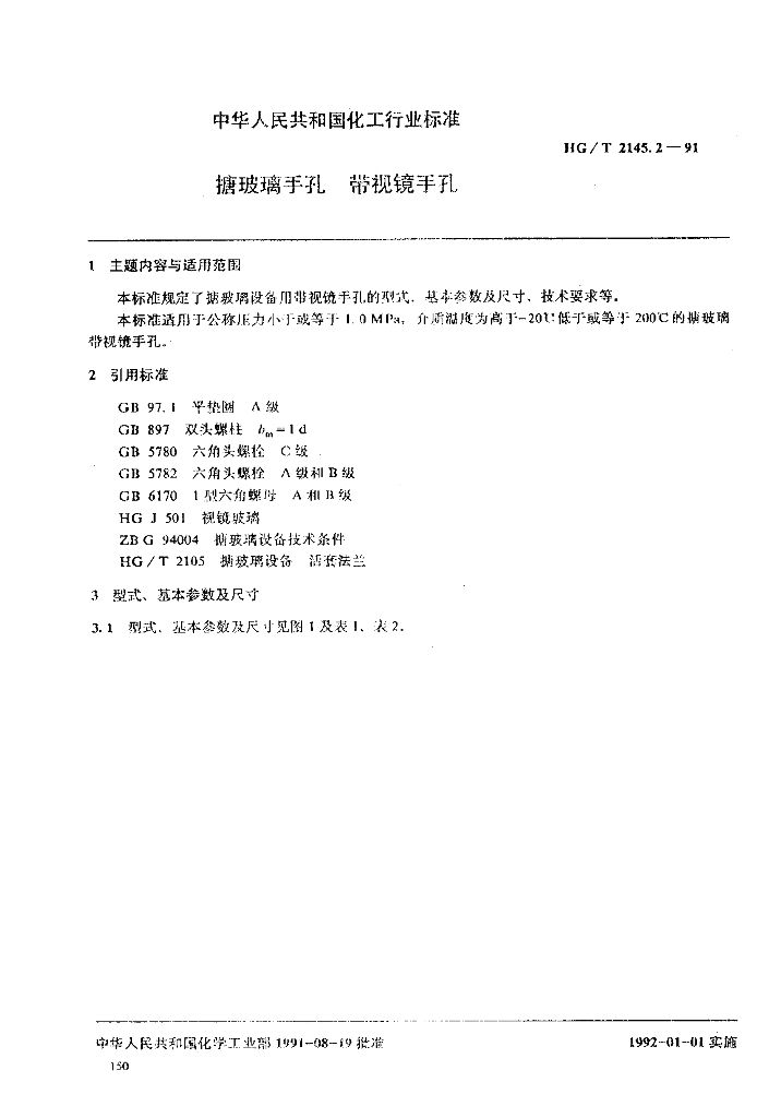 HG/T 2145.2-1991 搪玻璃手孔 带视镜手孔