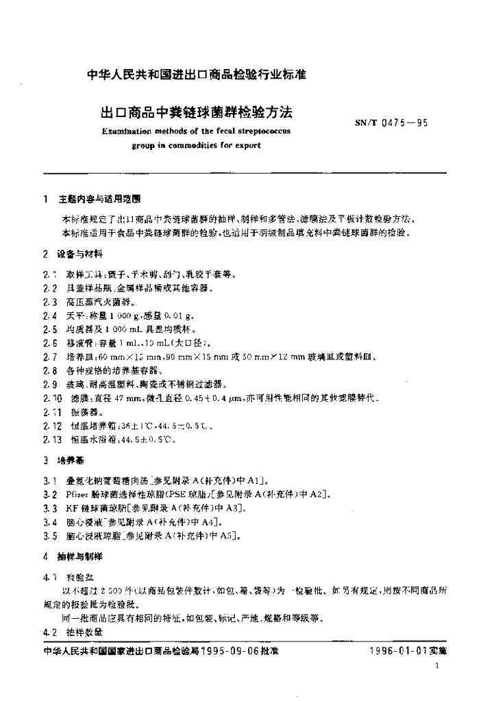 SN/T 0475-1995 出口商品中粪链球菌群检验方法