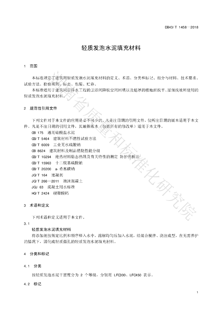 DB43/T 1458-2018 轻质发泡水泥填充材料