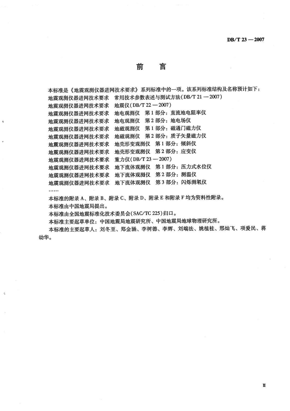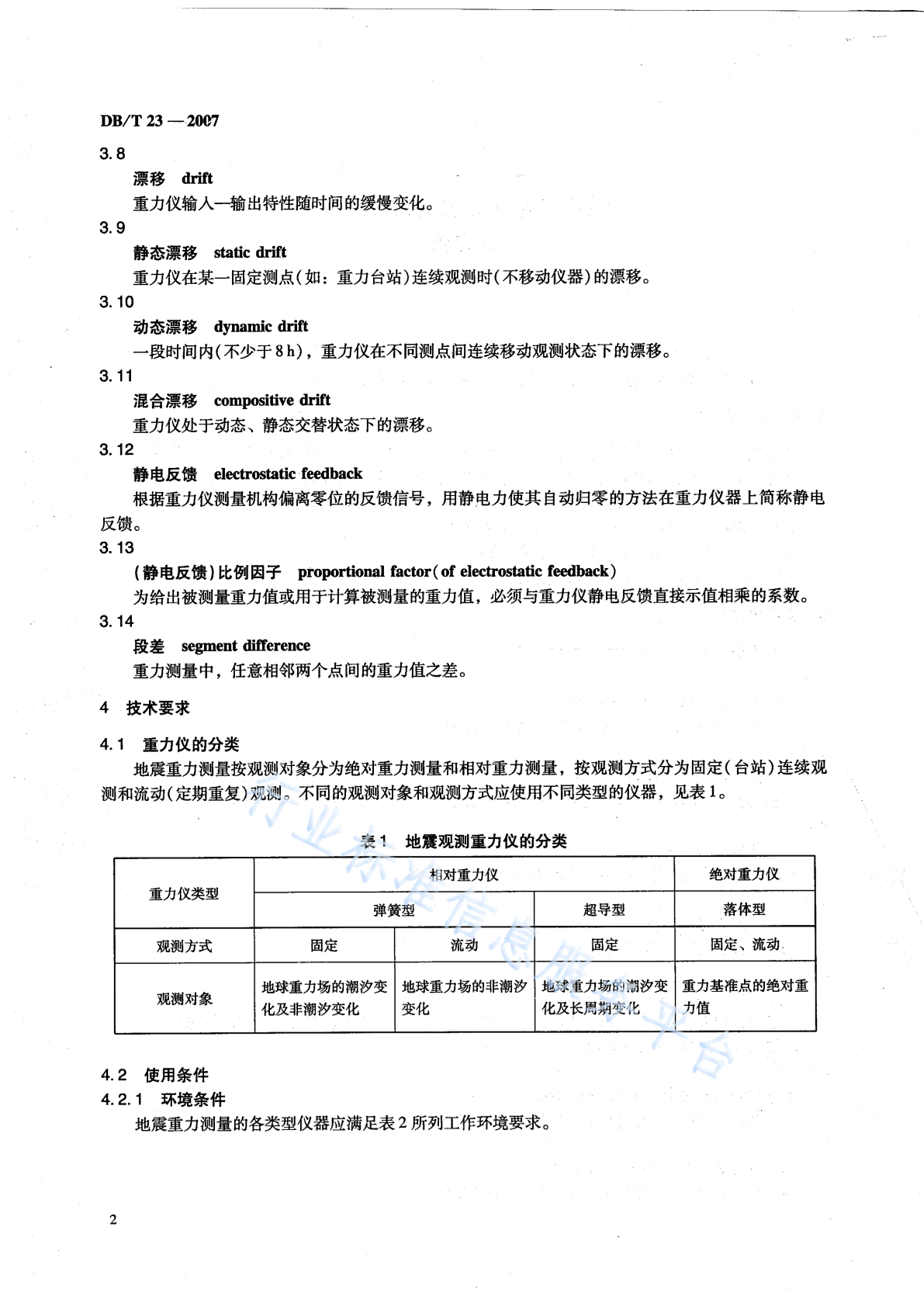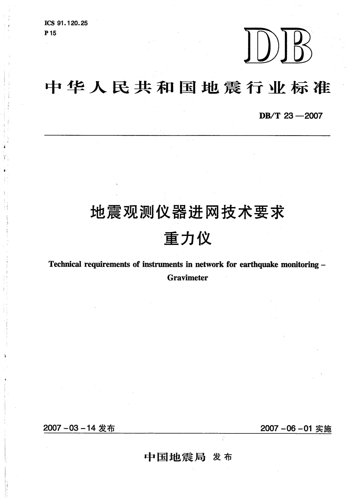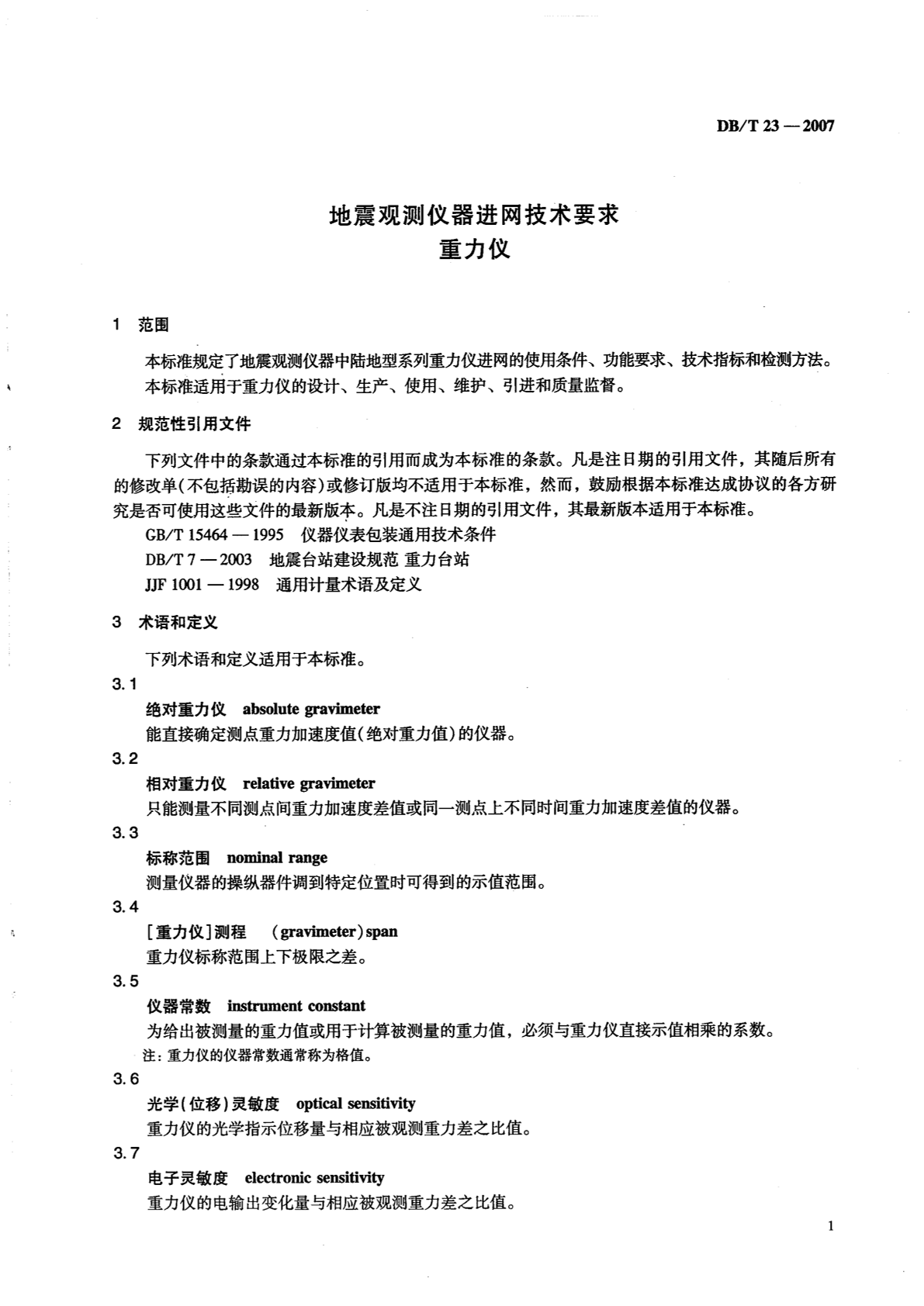DB/T 23-2007 地震观测仪器进网技术要求 重力仪