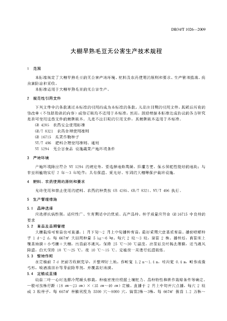 DB34/T 1026-2009 大棚早熟毛豆无公害生产技术规程