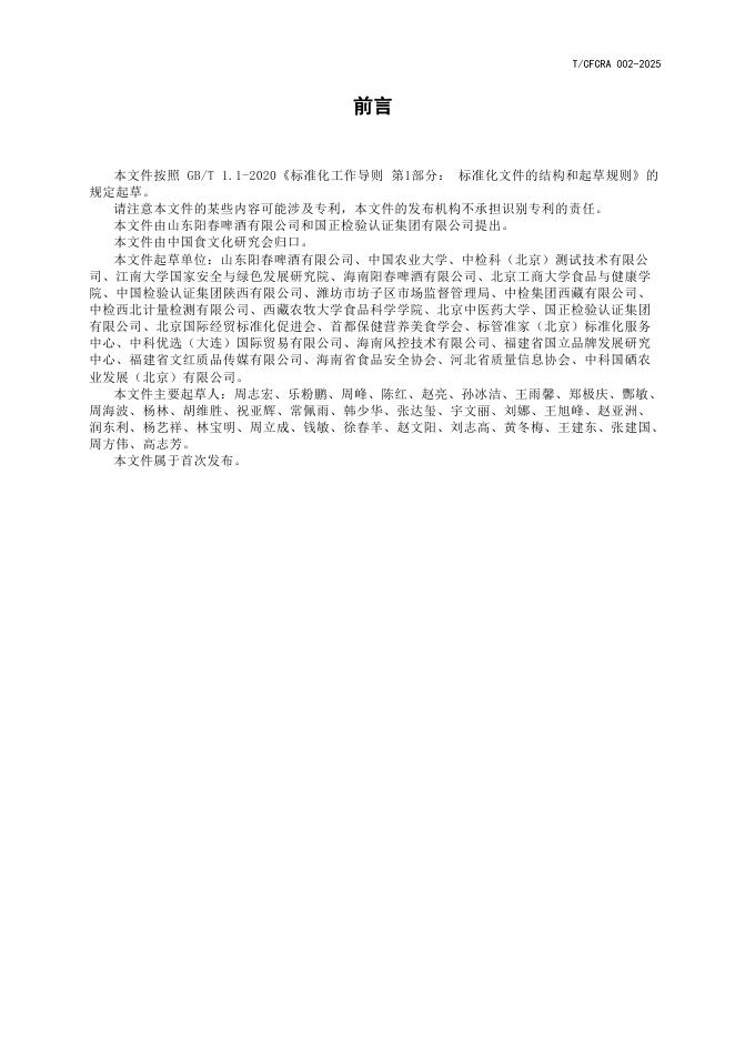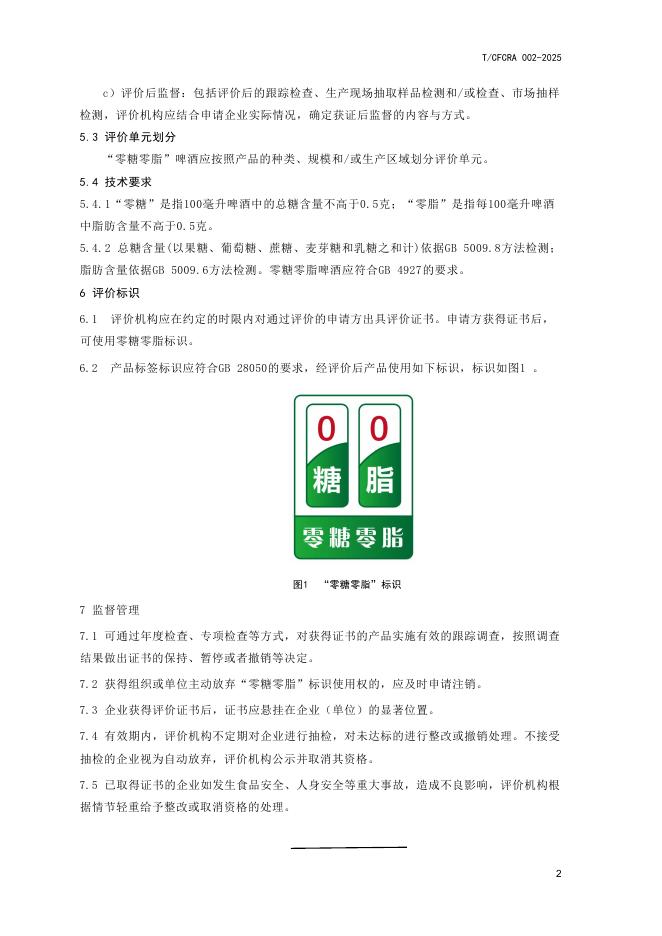 T/CFCRA 002-2025 “零糖零脂”啤酒评价技术规范
