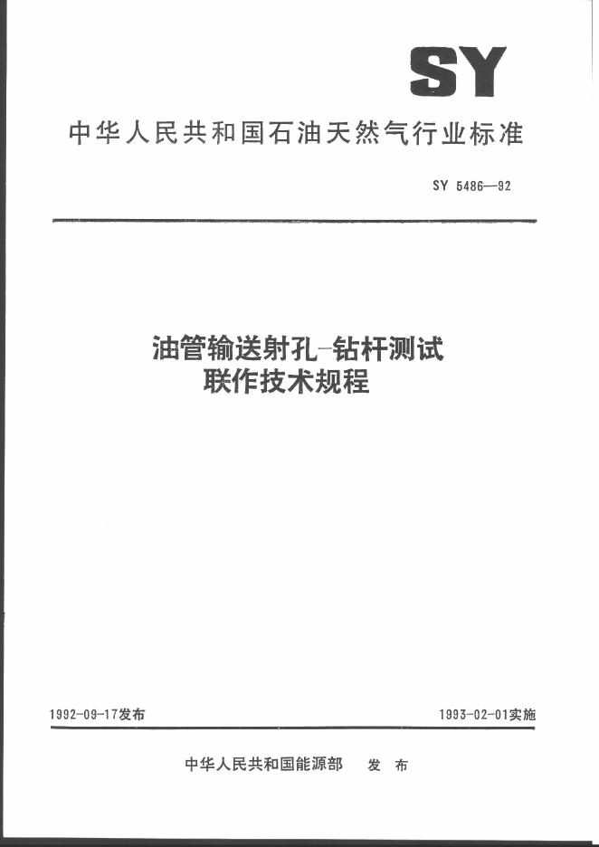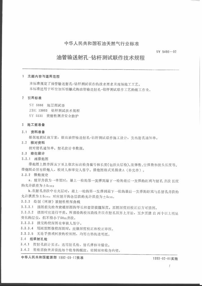 SY 5486-1992 油管输送射孔 钻杆测试联作技术规程