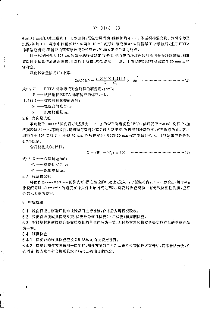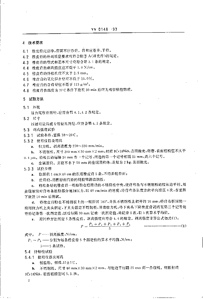 YY 0148-1993 医用橡皮膏