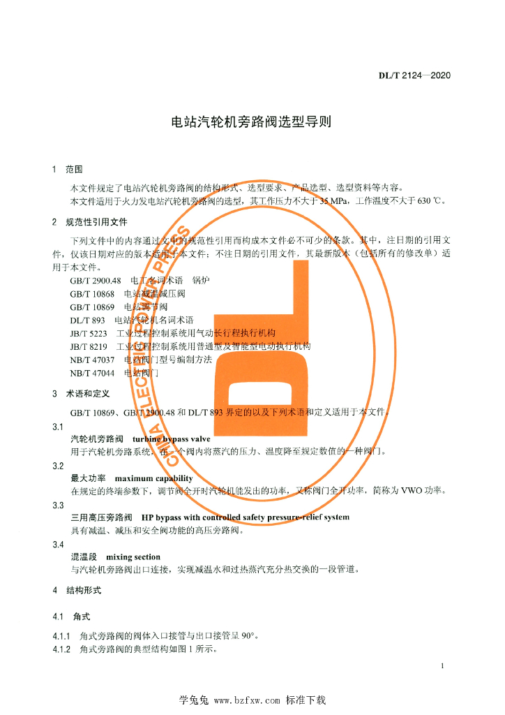 DL/T 2124-2020 电站汽轮机旁路阀选型导则