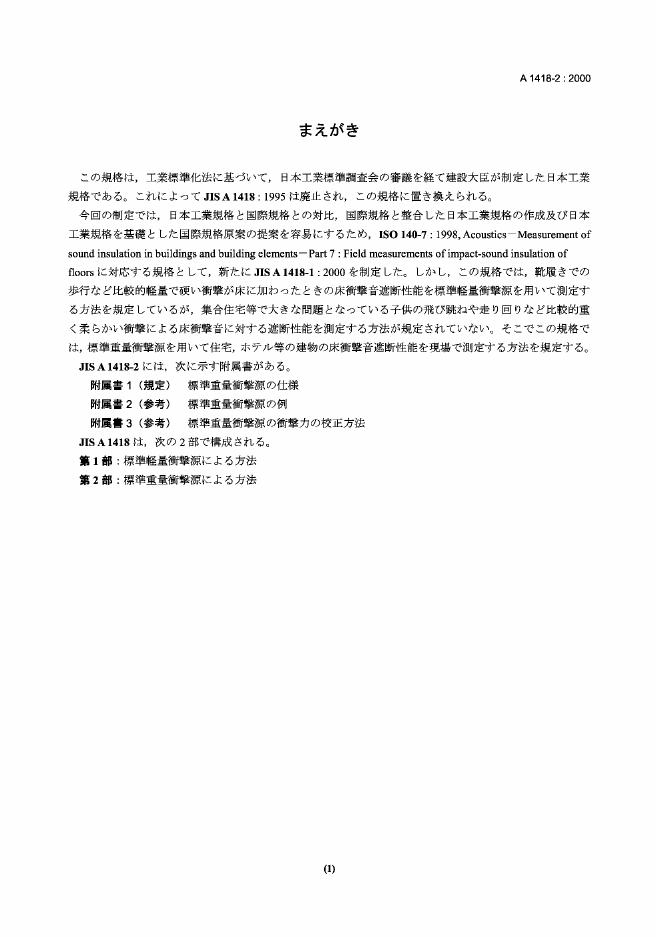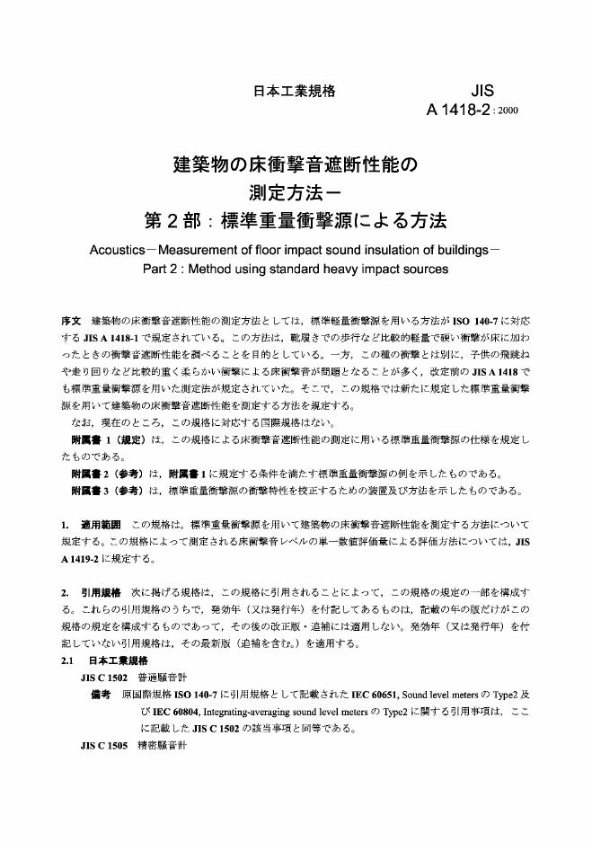 JIS A1418-2-2000 声学 建筑物的楼板冲击声音隔绝的测量 第2部分