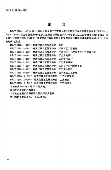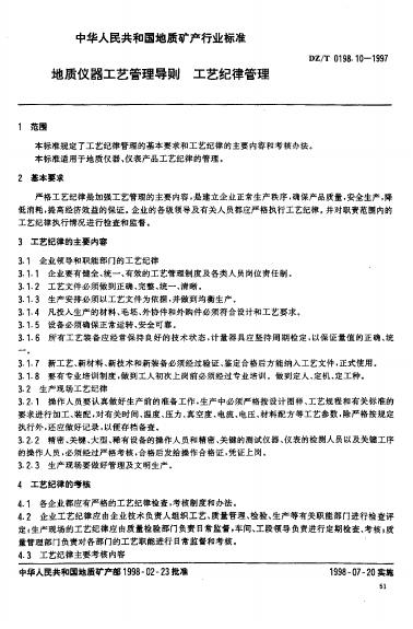DZ/T 0198.10-1997 地质仪器工艺管理导则 工艺纪律管理