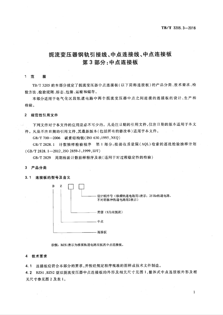 TB/T 3205.3-2016 扼流变压器钢轨引接线、中点连接线、中点连接板 第3部分:中点连接板