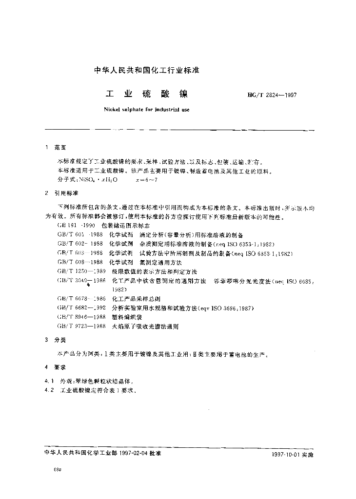 HG/T 2824-1997 工业硫酸镍