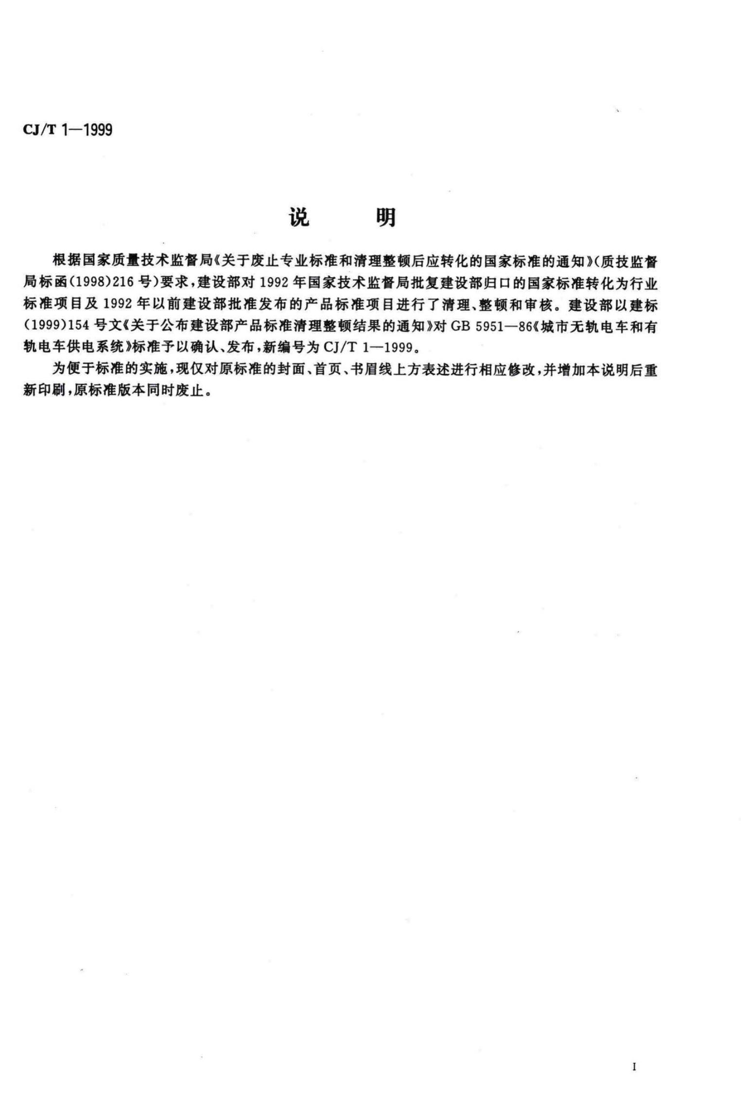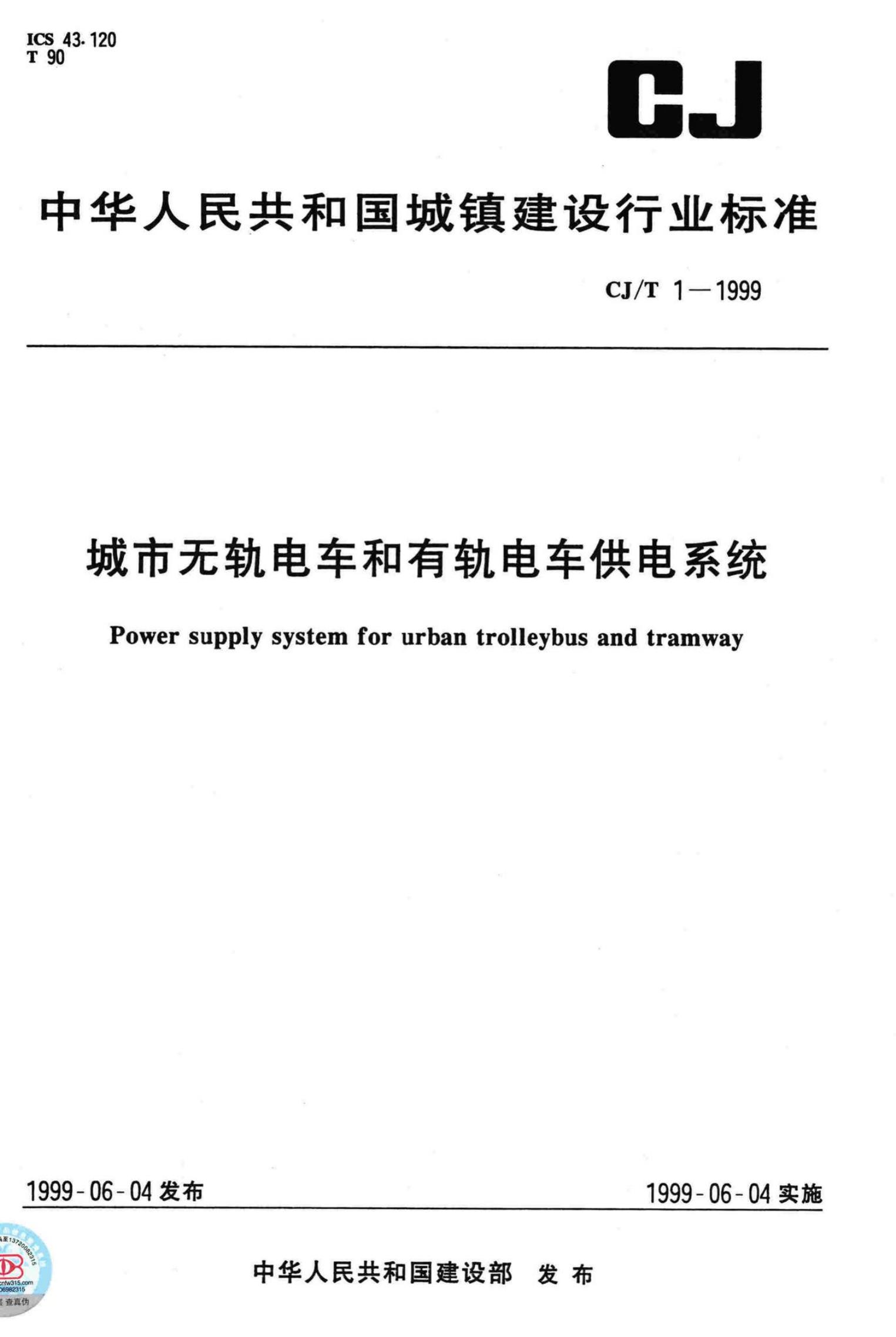 CJ/T 1-1999 城市无轨电车和有轨电车供电系统