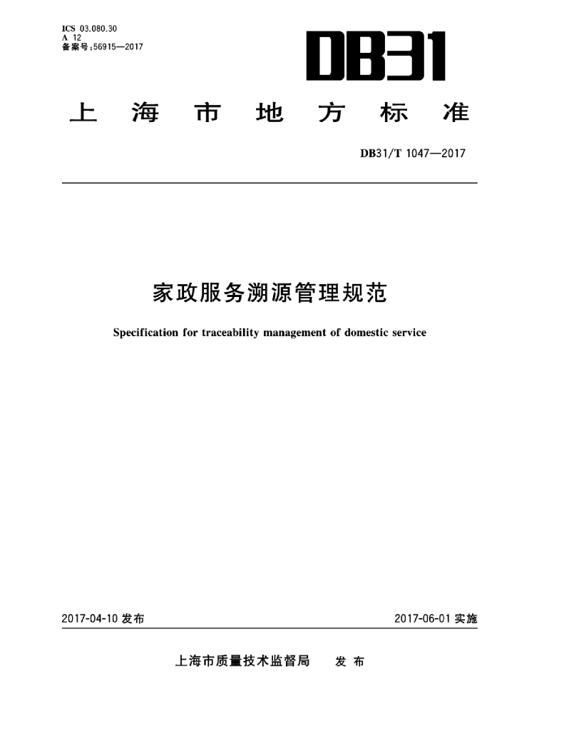 - 主管部门:上海市质量技术监督局