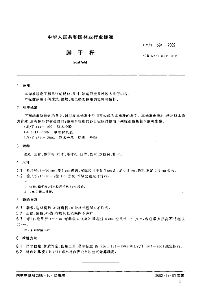 LY/T 1504-2002 脚手杆