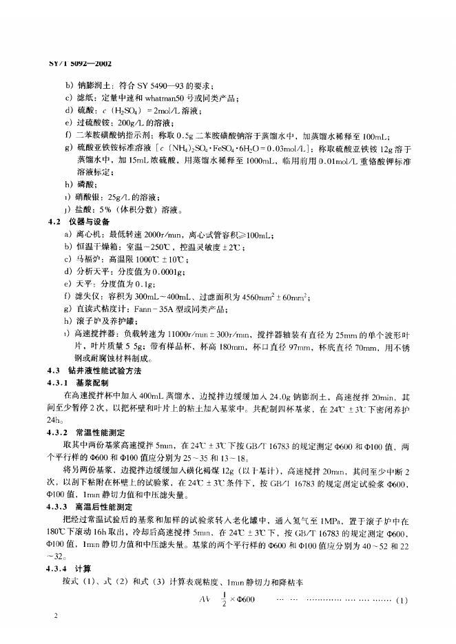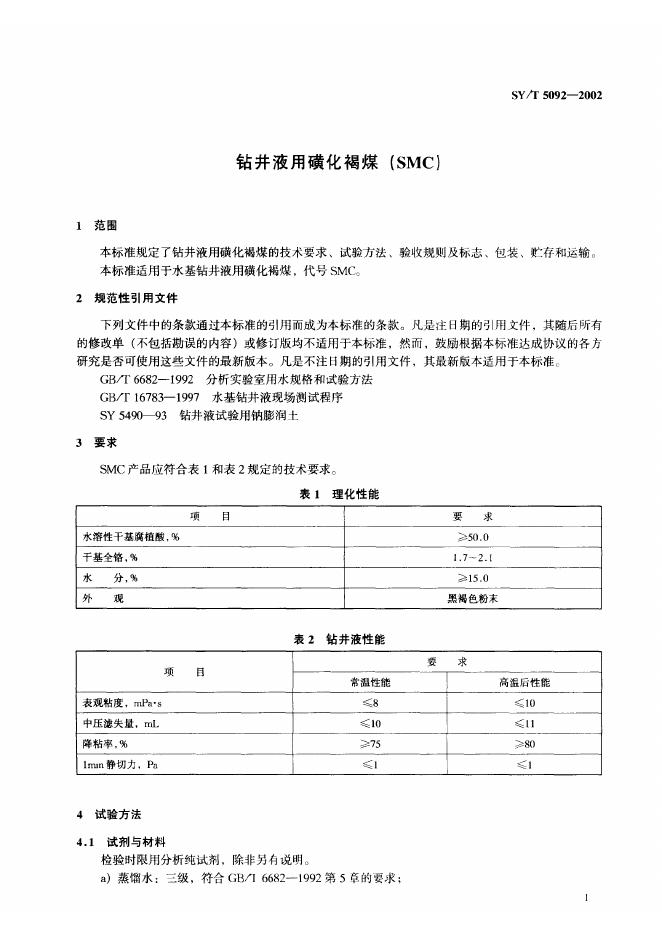SY/T 5092-1993 钻井液用磺化褐煤