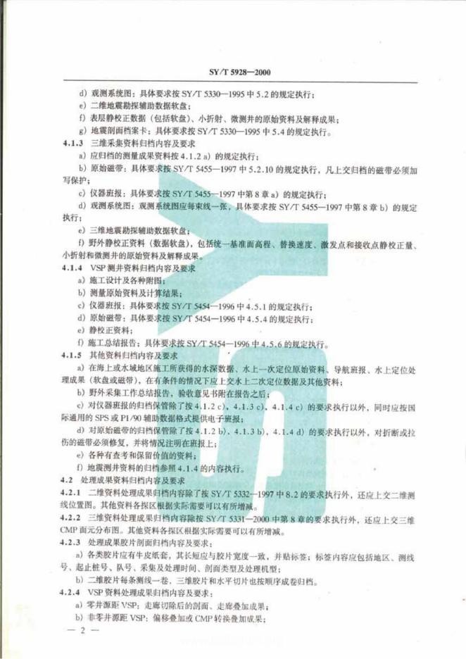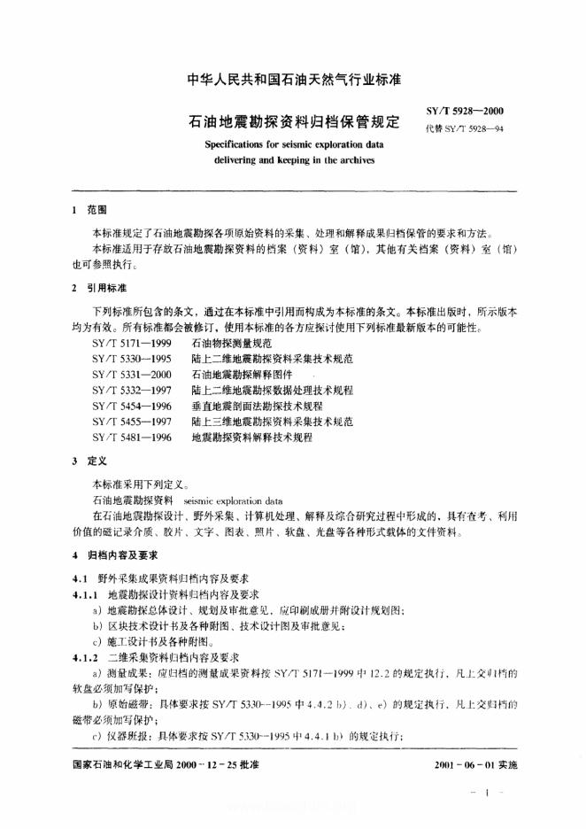 SY/T 5928-1994 石油地震勘探资料归档保管规定