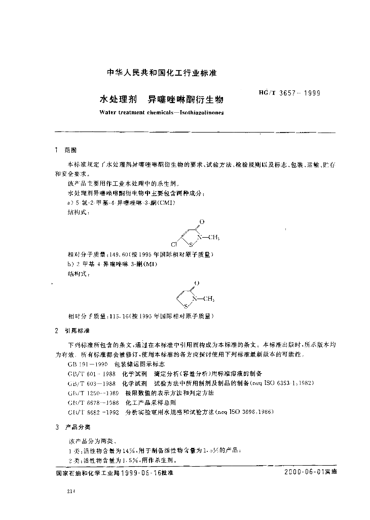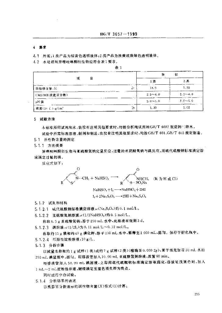 HG/T 3657-1999 水处理剂 异噻唑啉酮衍生物