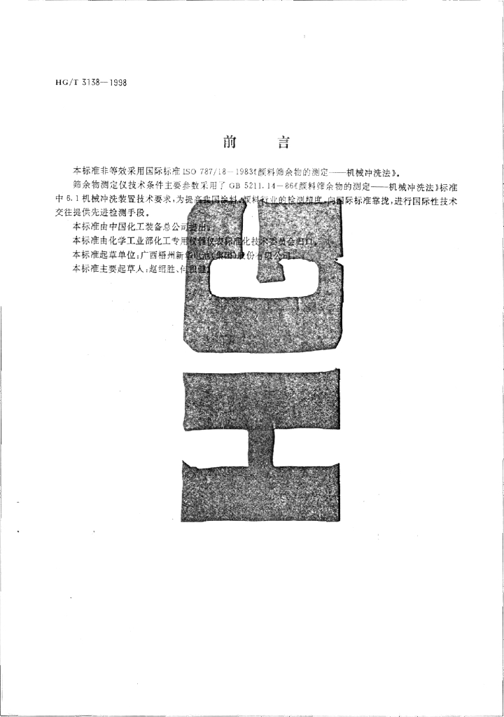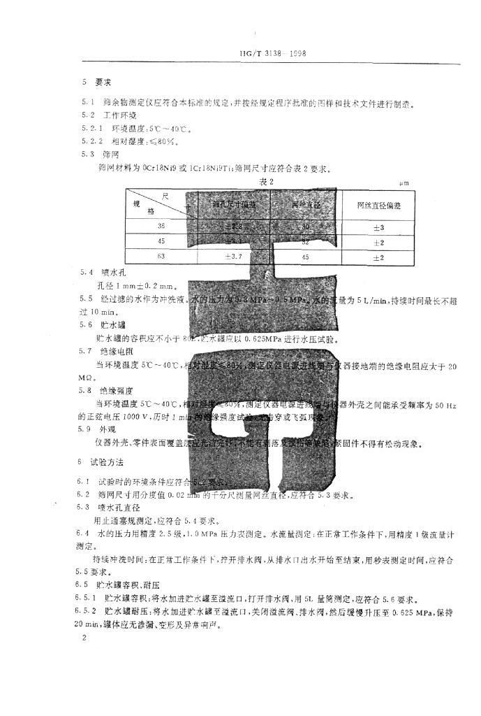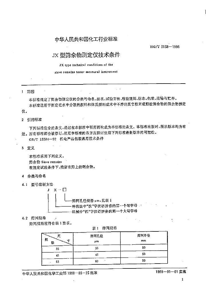 HG/T 3138-1998 JX型筛余物测定仪技术条件
