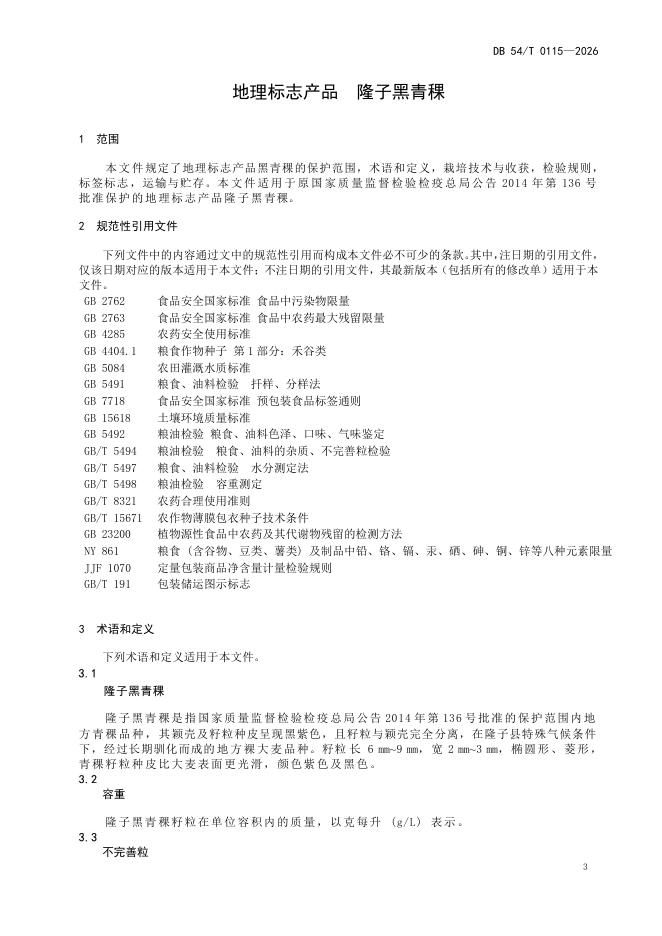 DB54/T 0115-2026 地理标志产品 隆子黑青稞