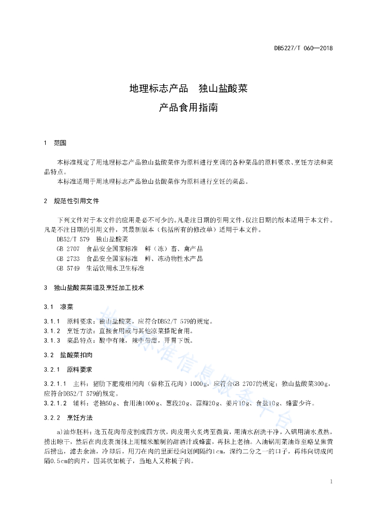 DB5227/T 060-2018 地理标志产品 独山盐酸菜产品食用指南
