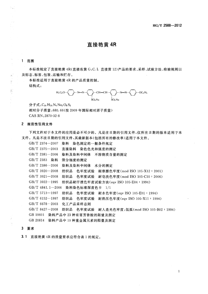 HG/T 2588-2012 直接艳黄4R