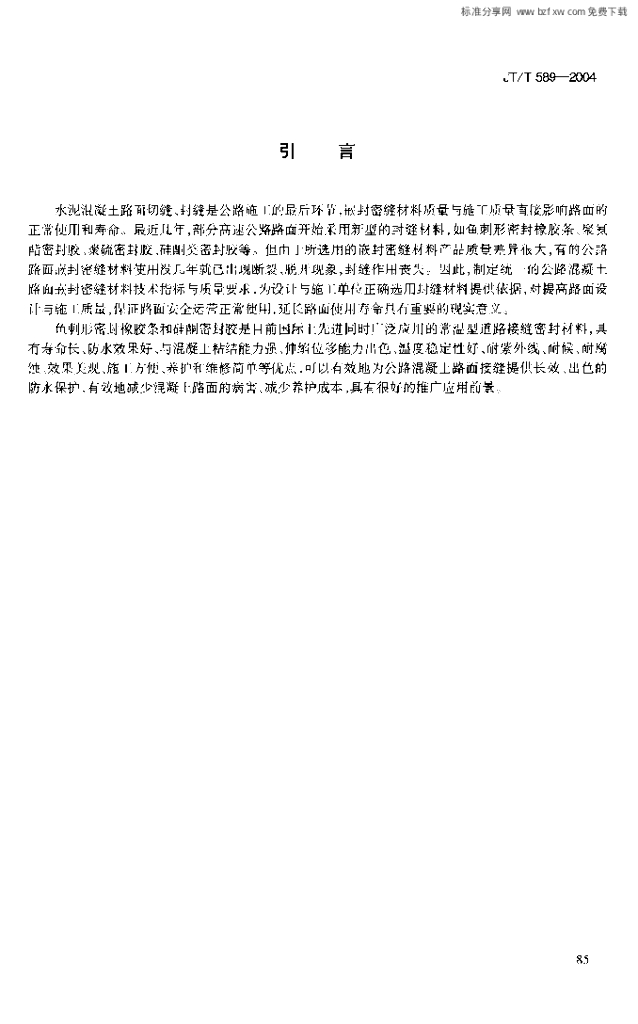 JT/T 589-2004 水泥混凝土路面嵌缝密封材料